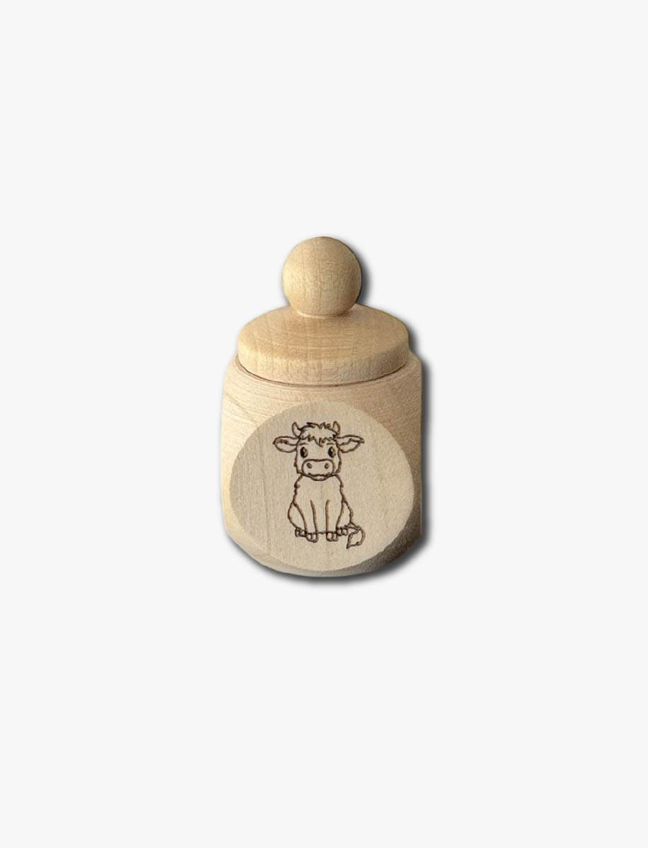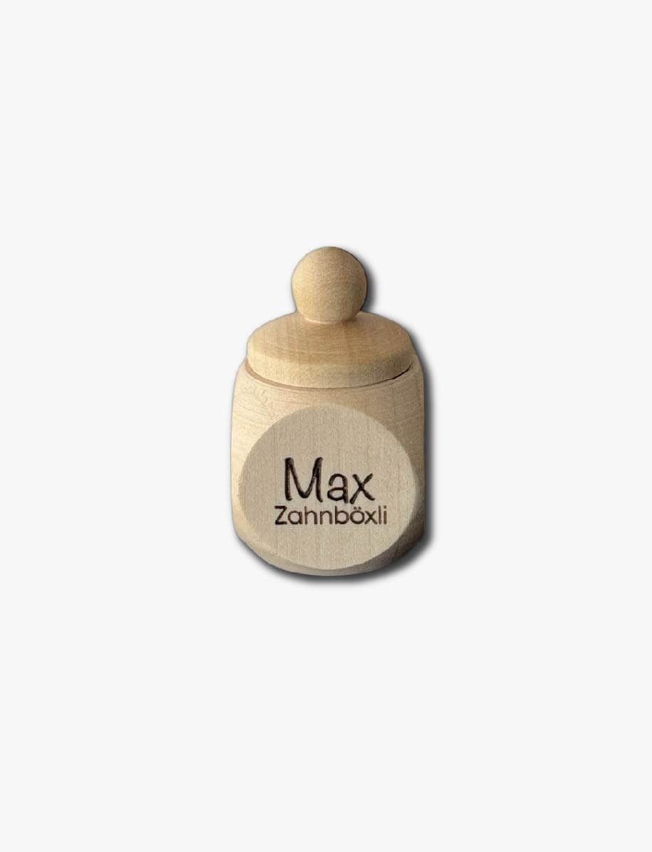 Das Zahnzauber-Dösli bewahrt die ersten Milchzähne wie kleine Edelsteine. Mit liebevoller Gravur von Motiv und Namen wir es zu deinem persönlichen Erinnerungsstück für Kindheit und Familie. Klein, handlich und voller Magie – ein Schatzkästchen für winzige Wunder des Aufwachsens.